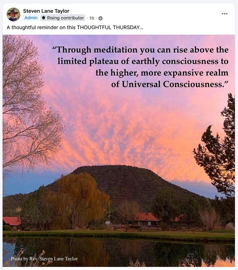 Photo by Rev. Steven Lane Taylor. Quote based on the teachings of Dr. Paul Masters.
