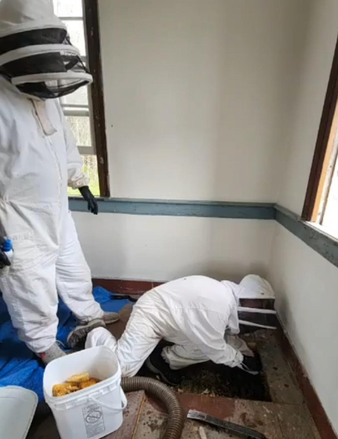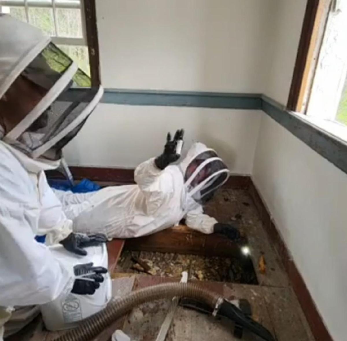 The Robert Preston House will have many visitors in years ahead, but the Bees are not ones we welcome. J.R. and Karen Sexton from Lee County, Va. have removed our latest swarm this April, 2023. As this is the second time, it was decided to remove a section of the floor in the east second floor bedroom. The Queen was captured and a vacuum system was brought to place the unwelcome bees in their hive box. The floor was replaced, and the entrance window was scrubbed with steel wool to prohibit more bees. The Queen and her hive are many miles away now.