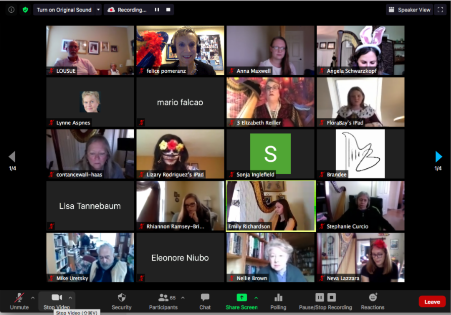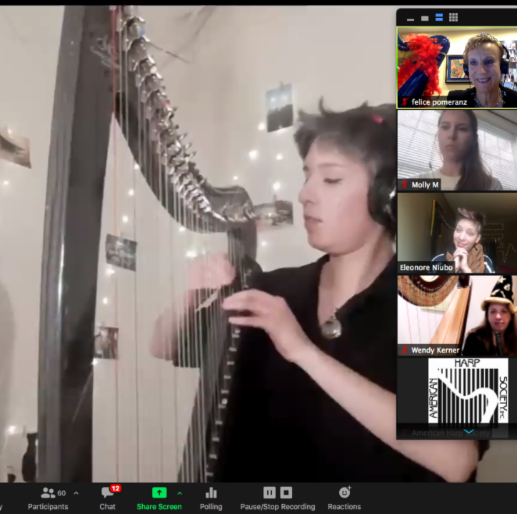 Finally, the Northeast Region of the AHS hosted our first Harptoberfest, Sunday, October 25. We had a terrific event with over 70 harpists representing every chapter in our region. We had ten student performers, French harpist, Eleonore Niubo, played for us, we had a Trivia contest, breakout rooms with fun questions to talk about, and a costume contest. The winners of the trivia contest were: Rebecca Wolf, Brandee Younger, and Cecily Zhao. The winners of the costume contest were: Lizary Rodriguez, FloraBay Lemon, and Julie Ralhan. So many chapters represented! Here are some photos of the festival.