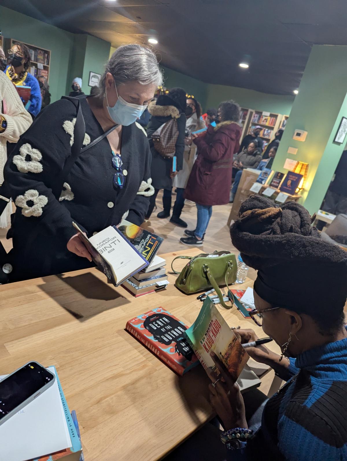 It was an honor and a pleasure to interview Dr. Nnedi Okorafor at Call and Response Books. Owner Courtney Bledsoe was a delight to work with and Dr. Nnedi captivated the audience with tales of her journey to legendary author stardom. I gave a special salutory salute to Semicolon bookstore who has unfortunately closed their doors. I felt it extremely significant that the three of us collaborated to continue the rich history of Black literature and how Black booksellers support the cycle of excellence. Dr. Nnedi's new release, "Death of the Author" sold out. This event was a great success.
