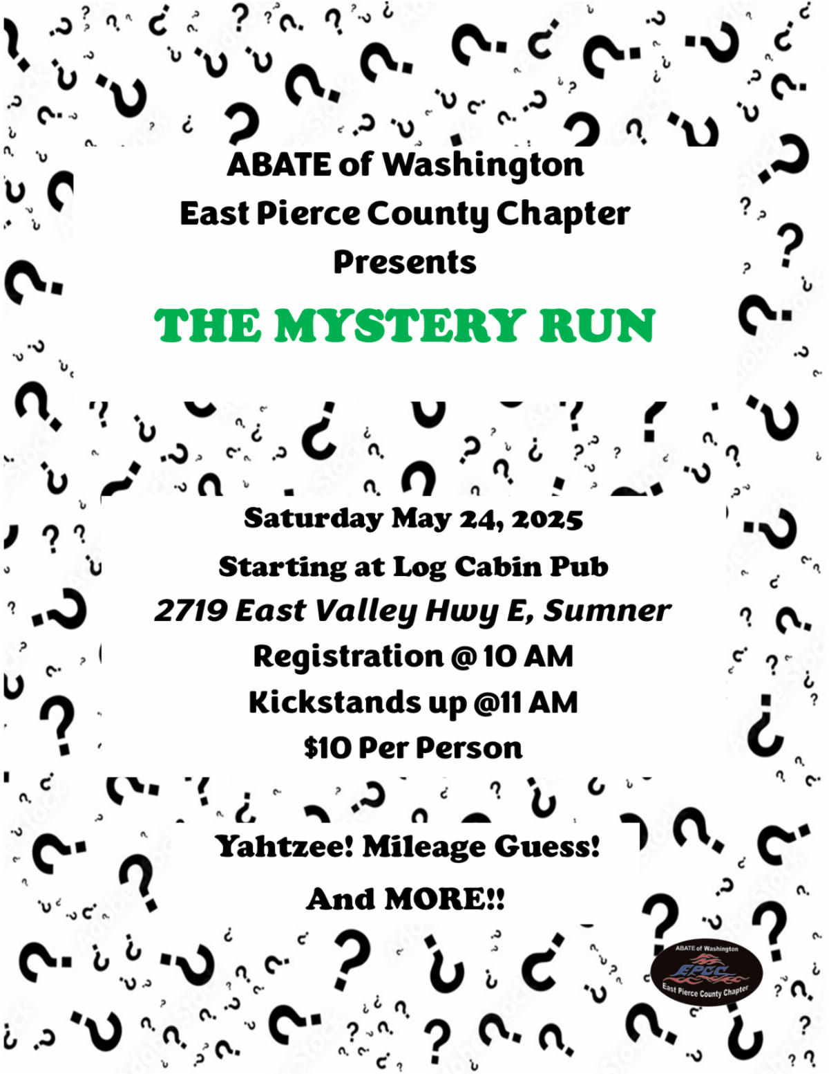 The Mystery Run is coming up at the end of May (look for the flyer in the newsletter, on the State Website, and Facebook).