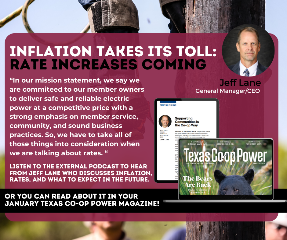 Commercial and industrial rates will also be affected, with full details in the January edition of Texas Co-op Power magazine or at tvec.net/rates.