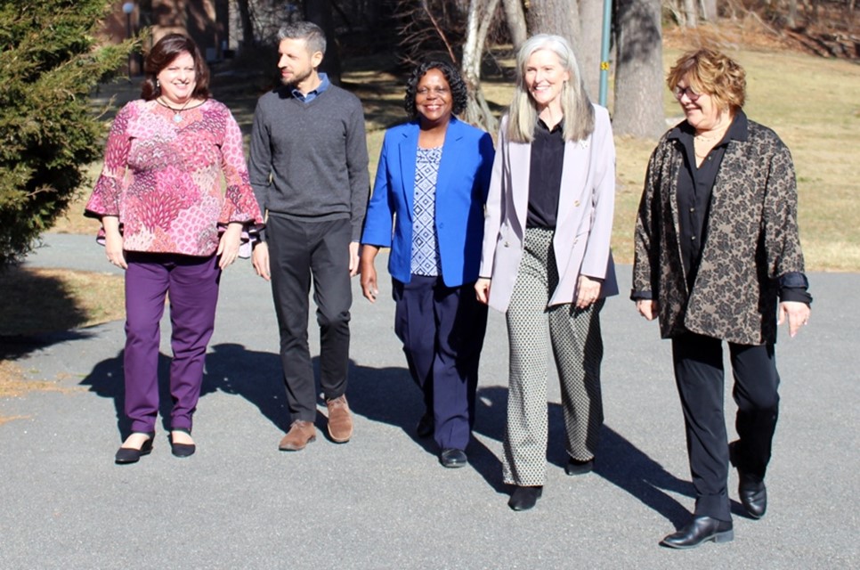 | | Professors Michele Lucille Lopez, John Damiao, Marie Lourdes Charles, Elizabeth Berro and Jennifer Tokash of Pace University’s College of Health Professions assess campus accessibility for students with physical disabilities | | |