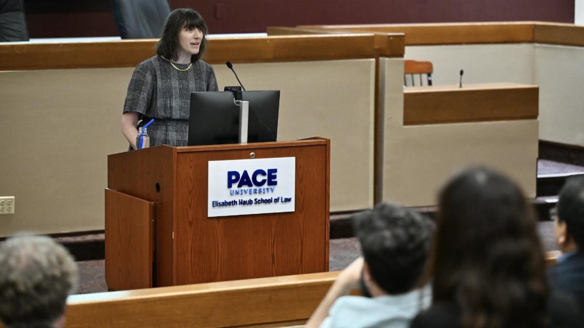 | | Margot Pollans, JD (Elisabeth Haub School of Law) delivered the James D. Hopkins Memorial Lecture on Monday, April 21, on "Inundations: Pain, Bodies, and the Law." Dean Horace Anderson appointed Professor Pollans as the James D. Hopkins Professor of Law for the 2023–2025 term. During the holder's term, the James D. Hopkins Professor delivers a lecture that is open to the entire law school community and members of the public. Professor Pollans opened her lecture outlining the different contexts in which people experience physical inundation such as toxic exposure, gun violence, radiation, and noise. Professor Pollans defined inundation and made the case that it is an essential unit of analysis. She offered a taxonomy of regulatory approaches to inundation, explaining that little current law prevents inundation. Instead, it facilitates individuals who want to protect themselves. And, finally, she explored the consequences of these approaches for both individuals and regulators. Throughout her lecture, Professor Pollans offered specific examples of inundation, many of which translate into our everyday life. | |