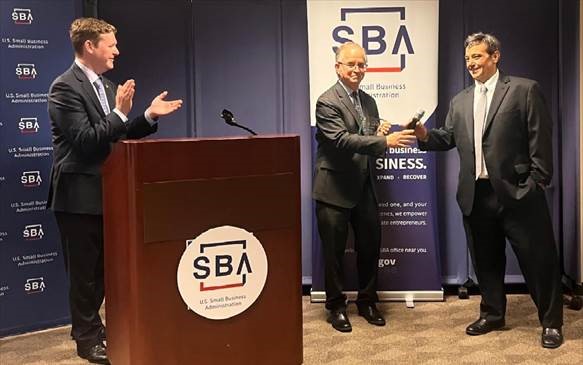 | | Regional Director of Pace’s SBDC Andrew Flamm (center) receives the SBA Award on behalf of Pace SBDC | | |