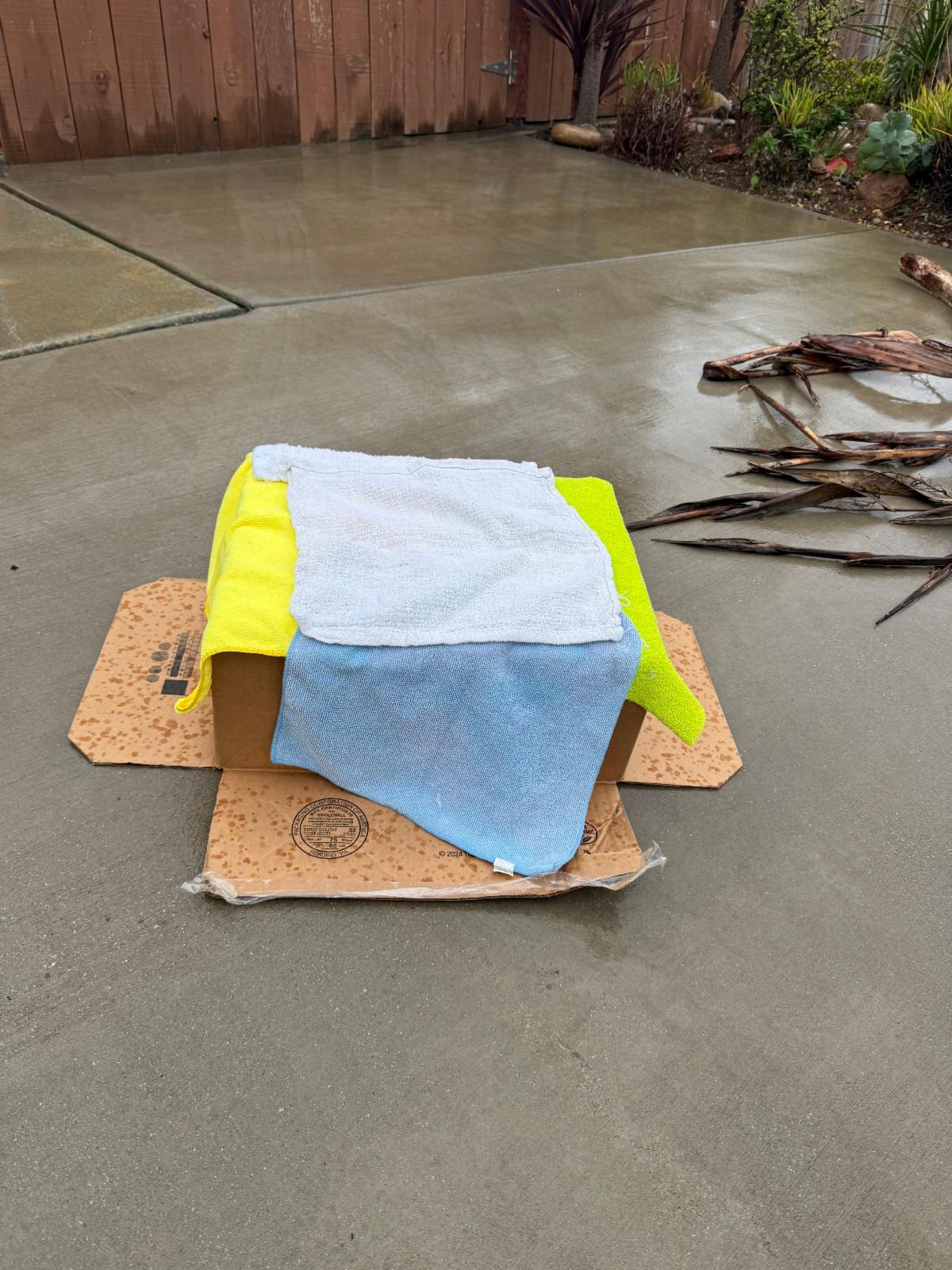 The San Diego Humane Society dispatcher advised Sarah not to touch or pick up the bat with bare hands, but to place a box and a towel over the bat to protect it from the rain until the San Diego Humane Officer arrived to collect it safely using leather gloves.