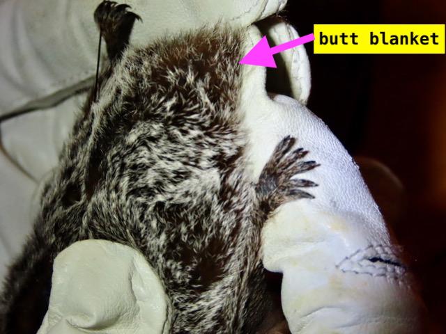 | | | Mother Nature made sure to give this solitary creature the necessary survival equipment. Hoary bats come equipped with their very own sleeping bag. Below you can see bat's “butt blanket,” a furry extension of his tail that can wrap around his torso for extra warmth. And even its little feet are covered in heat-conserving fur. (Photos by J. Cannon) | | Chapter 5: Making Hoary Bat History in Southern California! | | |