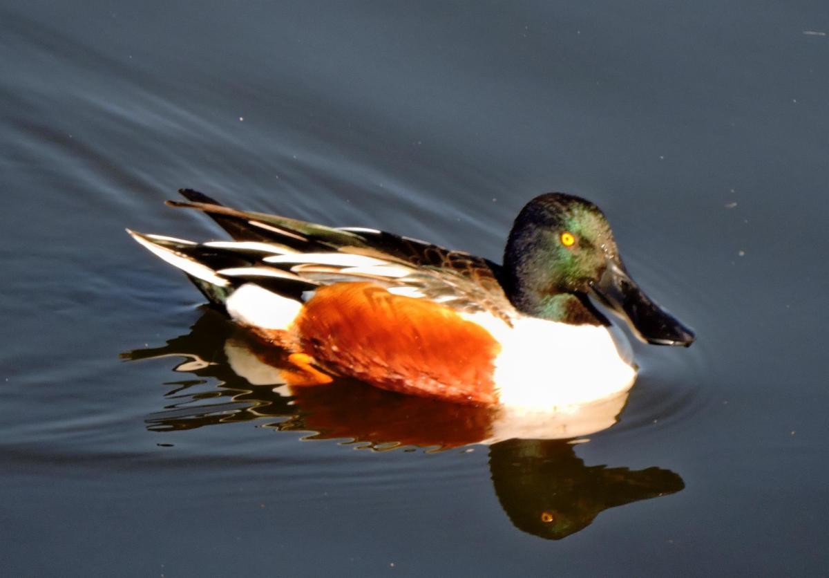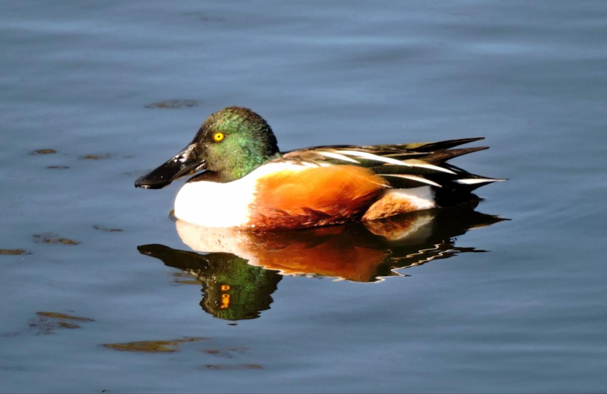 Northern Shovelers are fairly common winter visitors in our area; migrating down the Pacific Flyway from Alaska, Canada and northern US after the summer breeding season. They are a common wide-spread duck; found in many other areas of the world including Europe, Southeast Asia, Africa and South America.