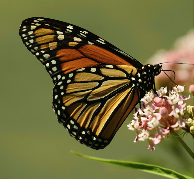 The iconic monarch butterfly is known for its astonishing long-distance annual migration and reliance on milkweed (Asclepias spp.) as its obligate larval host plant. Though genetically similar, there are two subpopulations of monarchs in North America, with the eastern population overwintering in Mexico and breeding in the midwestern states, and the western population overwintering in coastal California and fanning out across the west from Arizona to Idaho to breed.