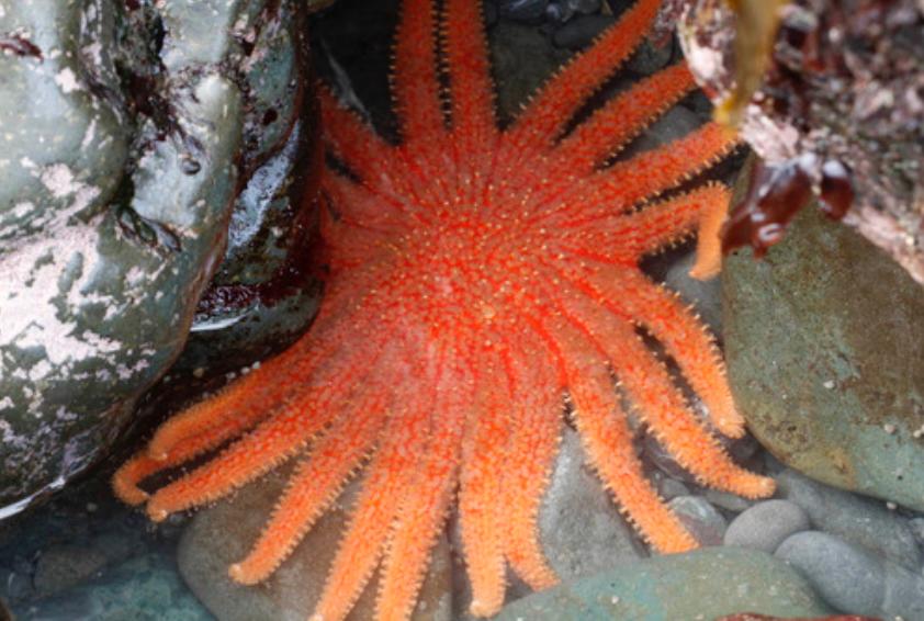 Sunflower sea stars play a critical role in our marine ecosystem because they are natural predators of sea urchins, which are notorious for destroying kelp forests. However, sunflower sea star populations have declined to critically low levels from a disease called Sea Star Wasting Syndrome. As a result, they were placed on the critically endangered species list in 2020.