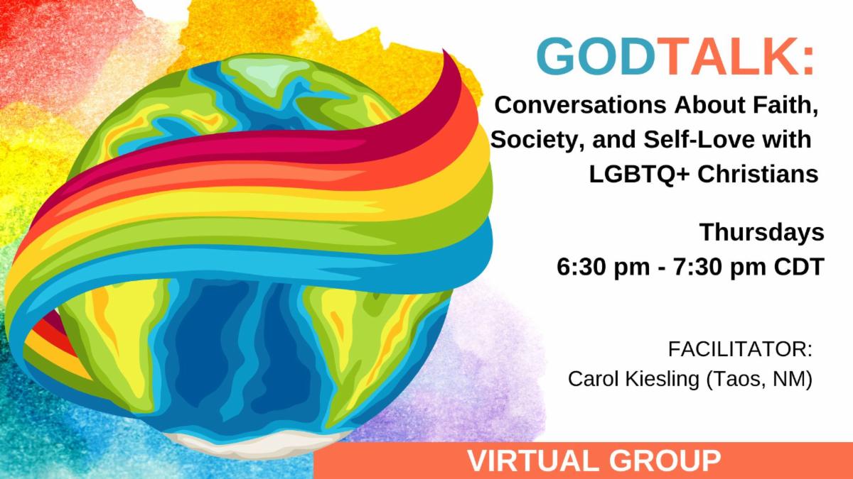 “God Talk” is another way of saying ‘Theology’, in other words: how we think and talk about Divine Presence. Many LGBTQ+ people have been hurt by oppressive or toxic theology, the kind of messaging that describes God as condemning and cruel. These wide-spread messages are often subtle, perhaps from well-meaning sources, so we don’t even realize how we internalized them. The trauma can run deep! No wonder so many people have difficulty developing a relationship with the Sacred. Resurrection MCC strives to build community to heal those wounds. This group is a safe haven to explore, question and discover how God works in and through us, regardless of who we are or the societal labels we carry. We will discuss our imaginings of the Divine in our lives and hear from people whose partnering with God brings meaning and hope into their lives. We seek to reframe our thinking and expand our imagination to move into a broader understanding of the God of Love. Conversations will be led virtually with Resurrection MCC Online Group leader Carol Kiesling and occasional guest panelists. This is a Zoom meeting. You will receive the Zoom link in an email once you have registered. The link is the same very week. Please note that this forum is recorded and available for replay on YouTube.