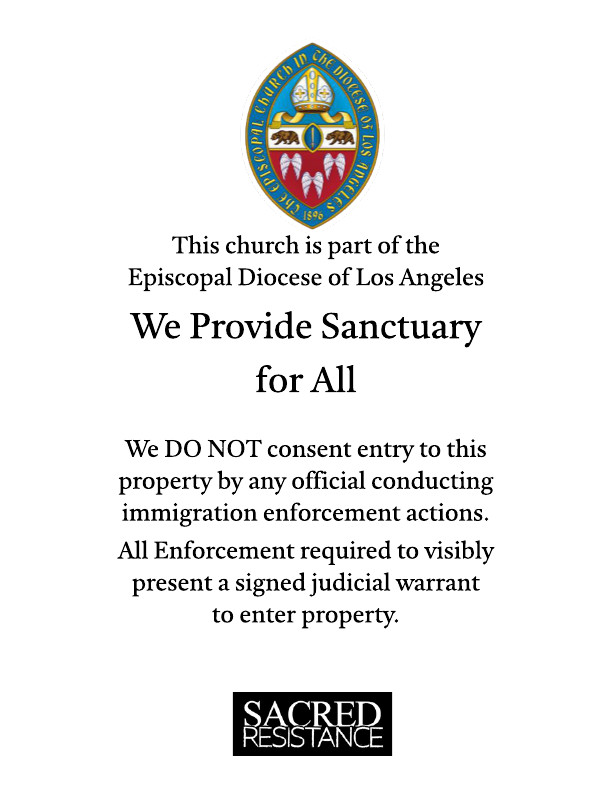 In response to the escalation of ICE raids across Southern California, the Sacred Resistance Task Force, an immigration justice ministry of the diocese, has created signs available to congregations throughout the Diocese of Los Angeles. The sign is now available in both English and Spanish. Download in English here. Download in Spanish here.