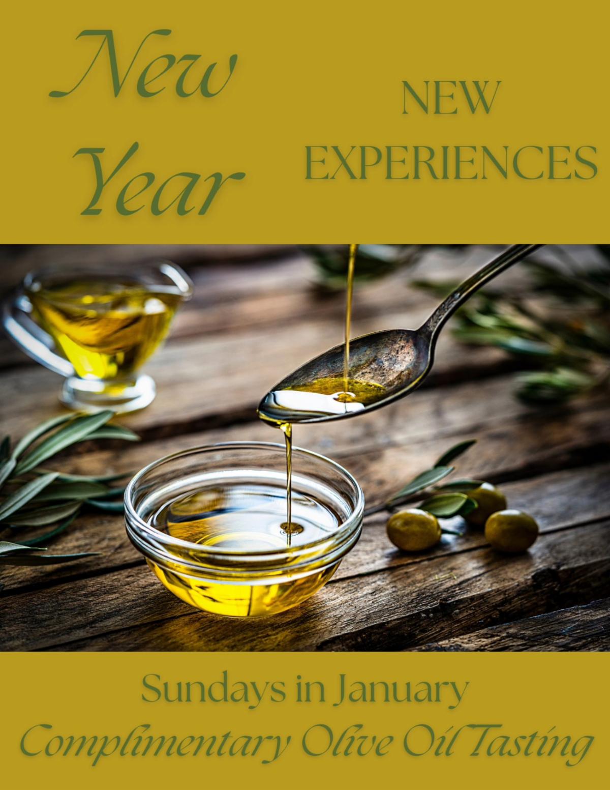 Estate Olive Oil Tasting and Information on the Health Benefits of Olive Oil. Every Sunday in January during Tasting Room hours. Complimentary