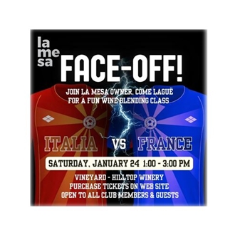 Join owner-winemaker Côme and longtime La Mesa club member Chris Cornish for a fun wine blending class. Participants are organized into two teams that will "compete" to make a winning recipe for our upcoming flagship red wine blend, Charactère.