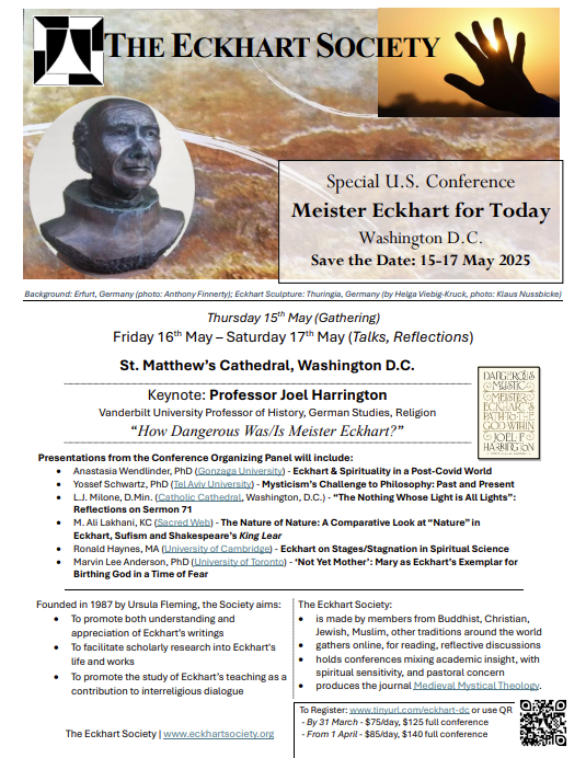 The Eckhart Society: Special U.S. Conference. Registration and details HERE. May 15-17, 2025, at St. Matthew's Cathedral. | | | |