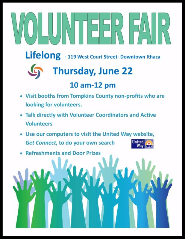 - Visit booths from Tompkins County non-profits who are looking for volunteers.