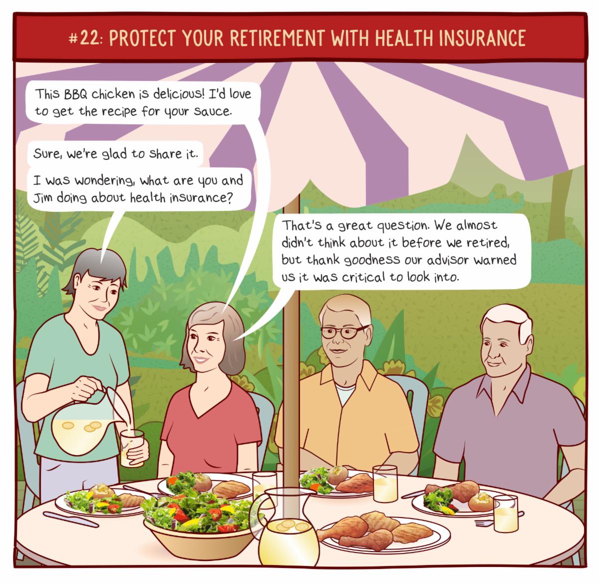 In Chapter #22 of Retirement Illustrated, we discuss strategies for protecting your retirement and finances with health insurance. This chapter focuses on the period before you're eligible for Medicare at age 65, when health insurance that you buy on your own can be quite expensive.