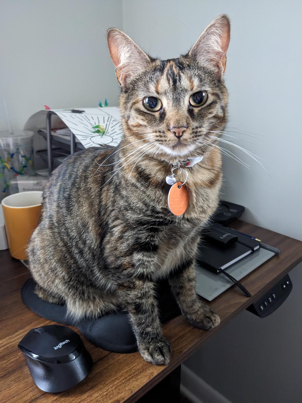 Oh and during work hours, enjoying working with the purrfect co-worker Taffy! Here’s a still life picture Kim has titled, Cat with Mouse. | |