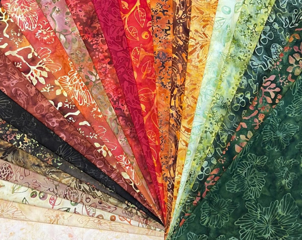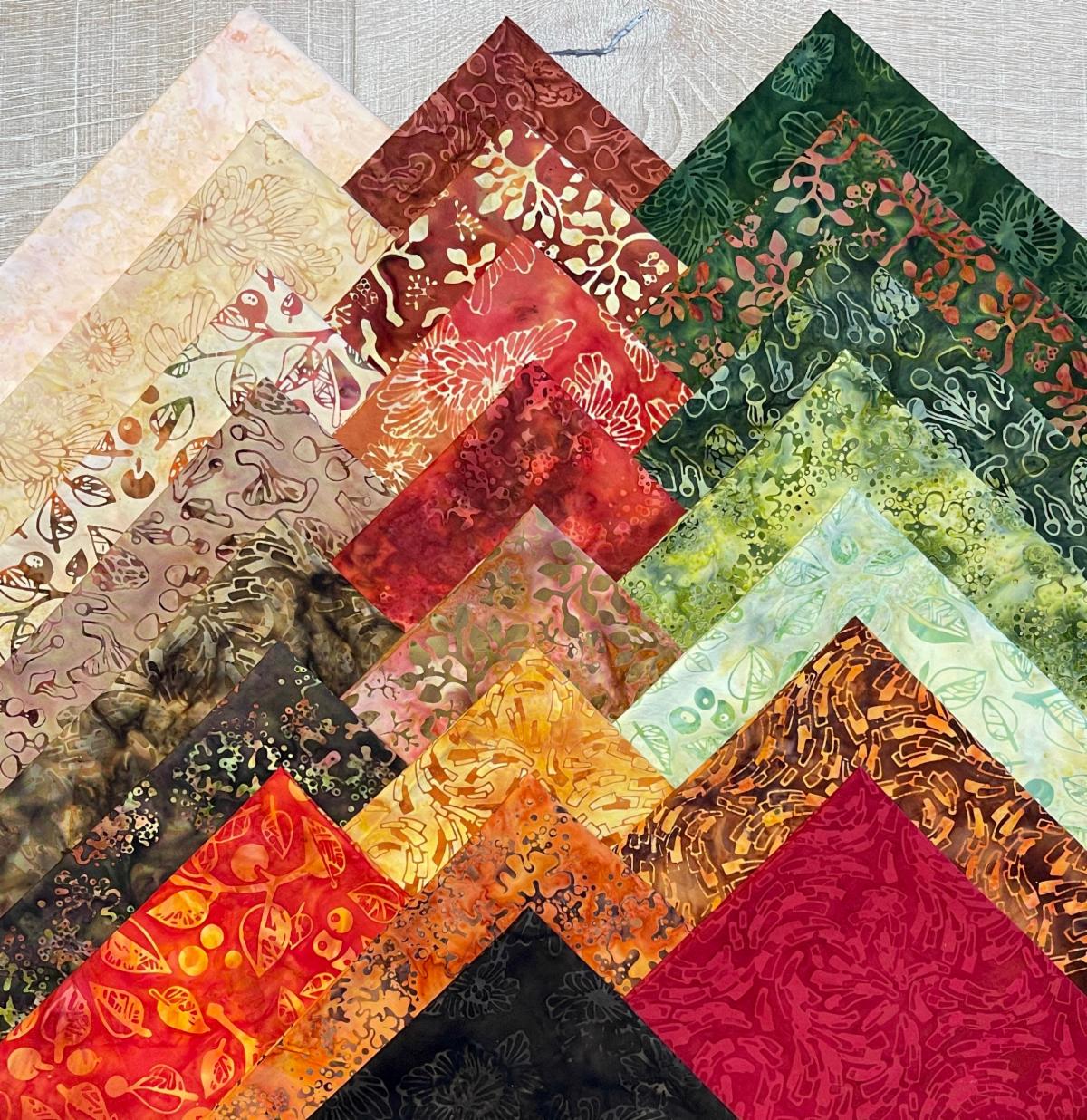 The 22-piece collection displays rich vibrant hues of greens, burgundy, cranberry, orange, tan, and browns with hints of forest vegetation such as mushrooms, leaves and lichens.