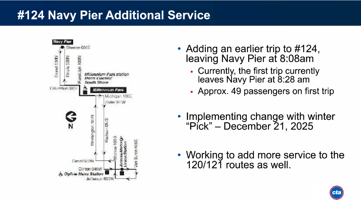CDOT and CTA continue work to transform the 108-year-old CTA train station at State & Lake. The work will affect the CTA bus routes listed here. Lake St has been reduced to one lane at the site, and State St has been reduced to one lane in each direction between Wacker Dr and Randolph St. The new station is expected to be finished in 2029.