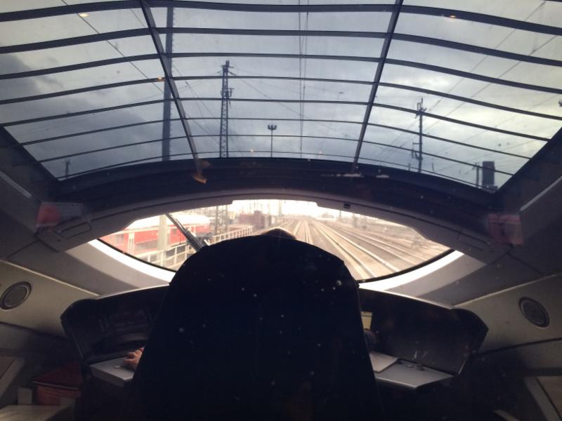 Front of the Ice Train. Of course we had to sit right by the engineer! Looks like a spaceship inside!
