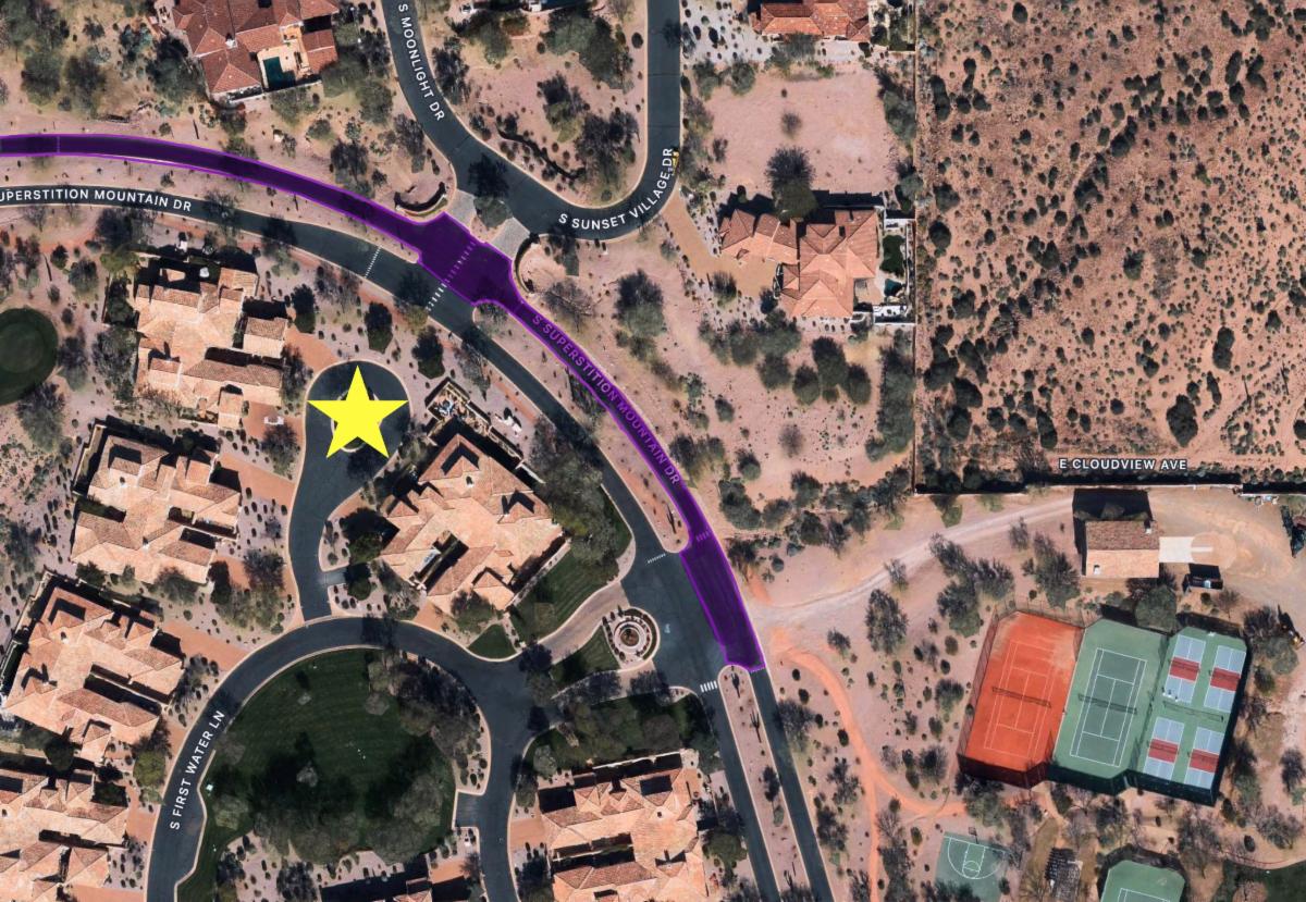To facilitate residential access during this 24-hour time frame, see below parking areas (gold stars) outside the paving area. These areas are a medium walk.
