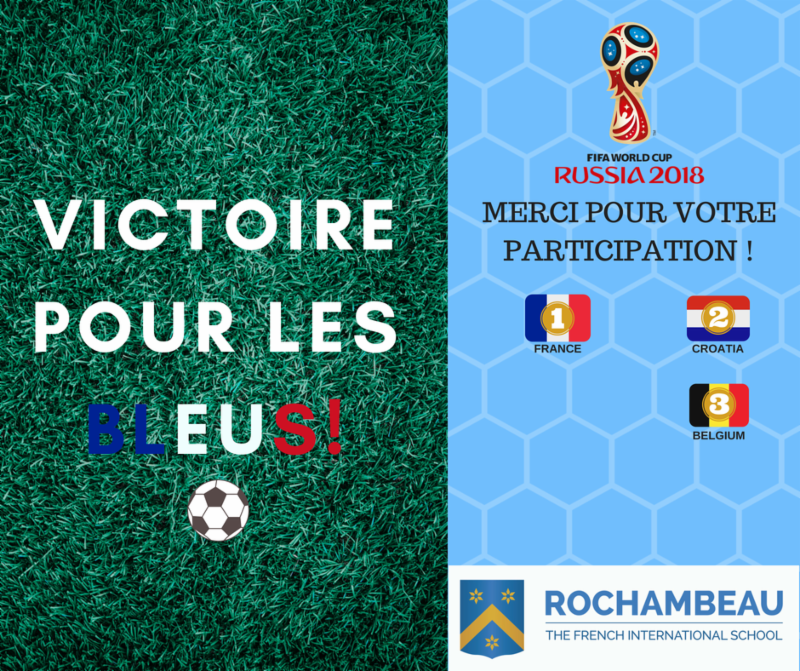 for your team spirit during this phenomenal World Cup! Your presence, cheers, "La marseillaise", and team spirit made this special day an even greater memory for Rochambeau. Merci!