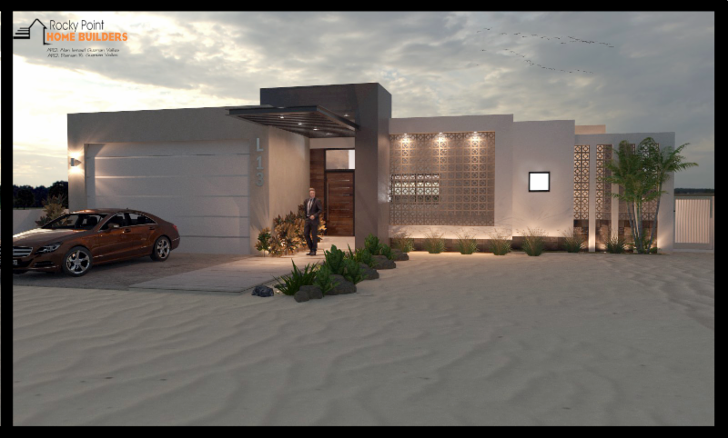 We are currently building a gorgeous ocean front, single level home in Playa Paloma which is about 40 miles east of Puerto Peñasco. This home features a modern design with three bedrooms, three baths, large open concept living, dining and modern kitchen two car garage and
