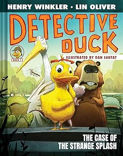 Detective Duck is an exciting new series by Henry Winkler and Lin Oliver. It follows Willow Feathers McBeaver, a unique duck with a beaver father. With her curiosity, love for adventure, and sharp mind, Willow becomes a detective to solve mysteries around Dogwood Pond. In the first book, The Case of the Strange Splash, Willow discovers the real problem is trash polluting their habitat. Each book in the series tackles a new mystery rooted in environmental issues.
