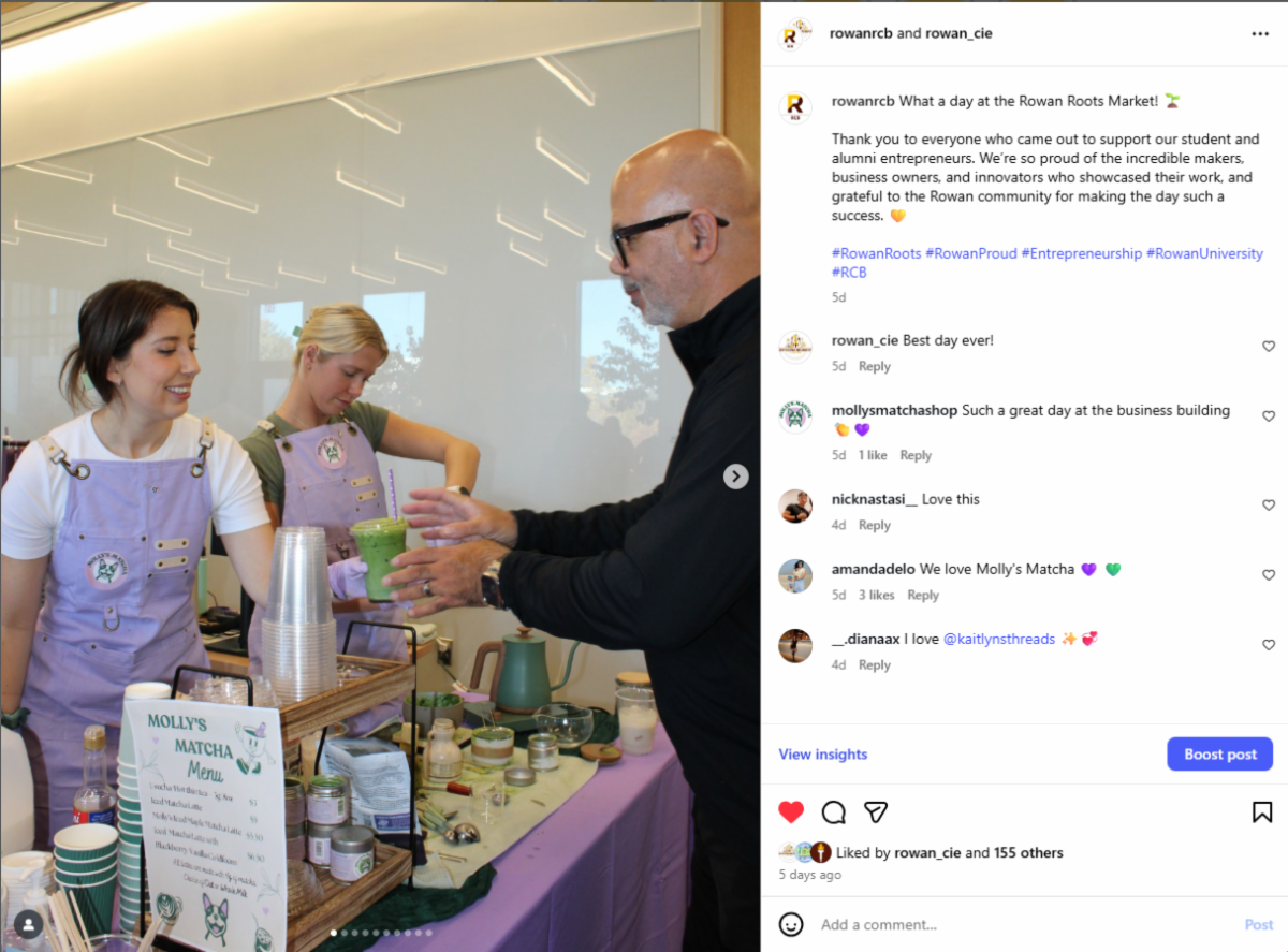 We are proud to celebrate Rowan’s Entrepreneurship Program once again being named a Top 50 program by The Princeton Review, reaffirming our national leadership. That entrepreneurial spirit was on full display at our inaugural Roots Market, where student and alumni founders transformed Business Hall into a vibrant marketplace of ideas and enterprises.