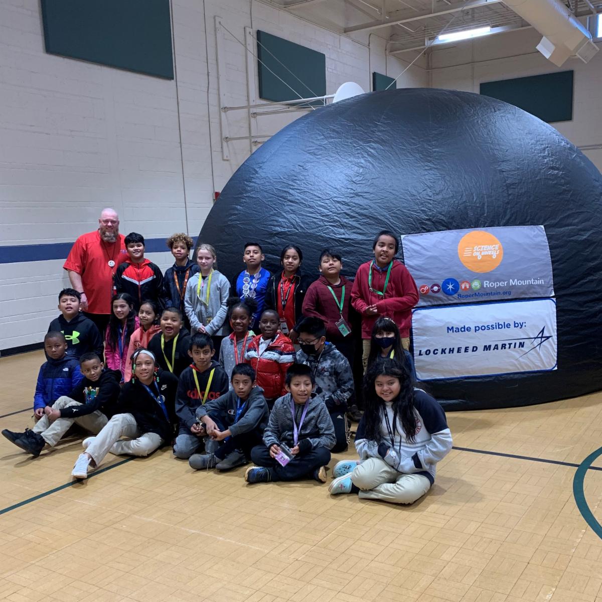 This month’s donor spotlight is Lockheed Martin, who has generously supported our Science on Wheels program for the past three years. Lockheed’s support has made it possible for thousands of students from Title I schools in Greenville County and beyond to be able to experience some of the amazing outreach programs provided by Roper Mountain. Here, students from Cherrydale Elementary prepare to visit our portable StarLab planetarium for another Science on Wheels adventure!