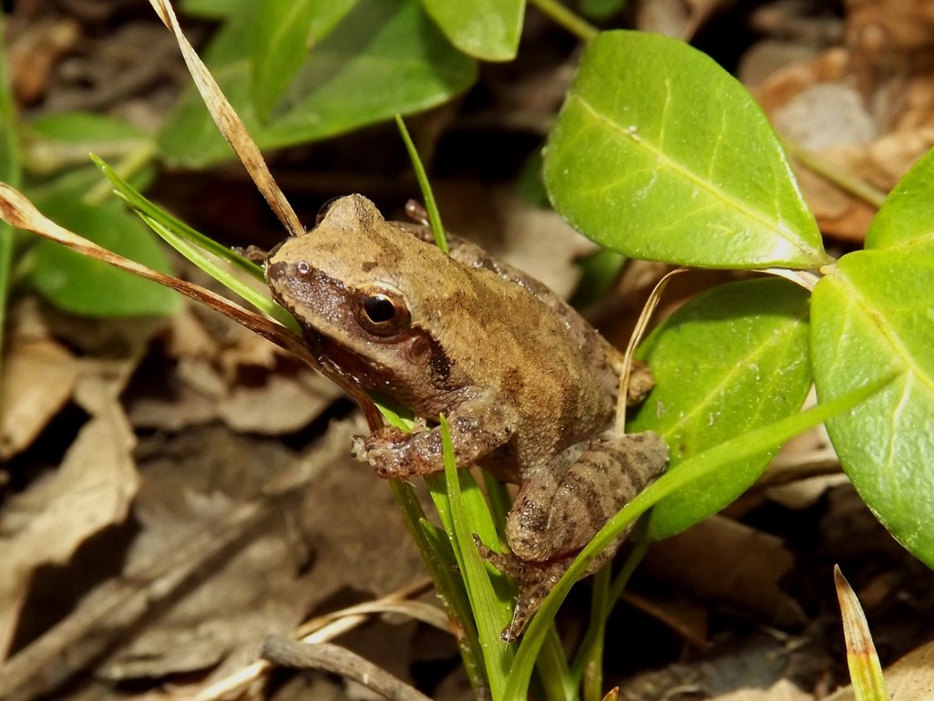 Some of the frog calls to listen for in March are from these early breeders: American Toads, Pickerel Frogs, Chorus Frogs, and Spring Peepers (pictured). Come April, most of these male frogs will stop calling to attract females and other frog species will start calling. Look for insects to start to emerge, like caterpillars. Many birds time their nesting so that eggs hatch when insects are available to feed their nestlings. Insects often synchronize their emergence with the leafing out of trees.