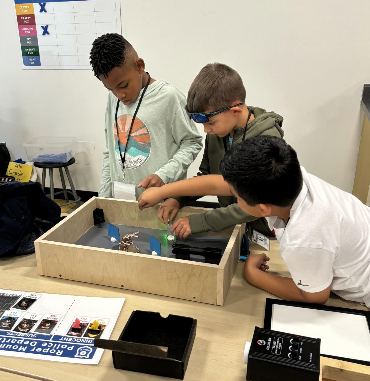 ScanSource has supported Roper Mountain for many years, providing funding for a number of projects around our campus, including one of our new 4th grade labs, Light Heist. In this lab, students use properties of light to discover which suspect stole a precious sculpture. The evidence shines light on the guilty party!