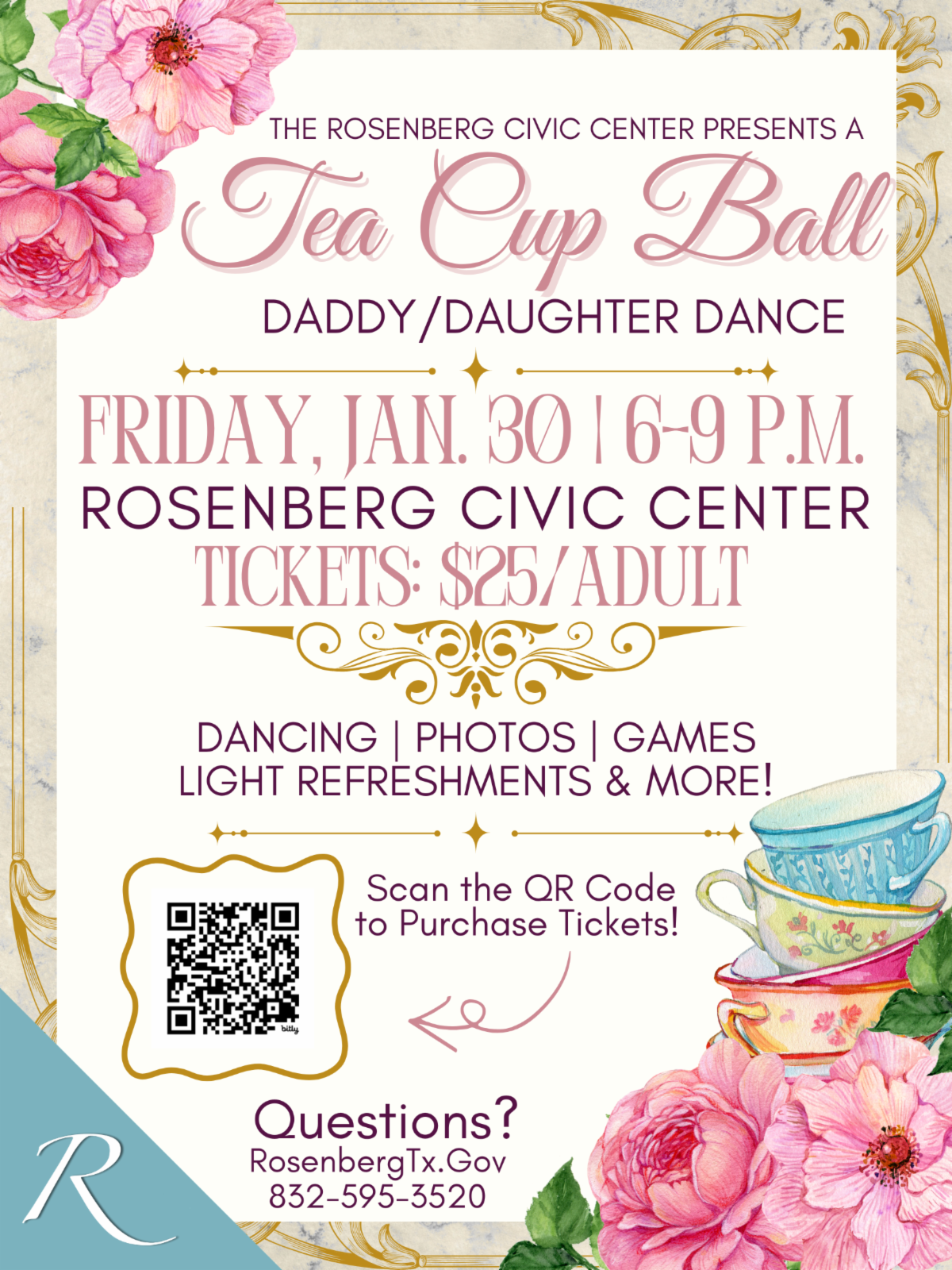 The Rosenberg Civic Center is thrilled to host the Tea Cup Ball 4th Annual Daddy/Daughter Dance on Friday, Jan. 30, 2026 from 6-9 p.m. at the Rosenberg Civic Center, located at 3825 Highway 36 S.