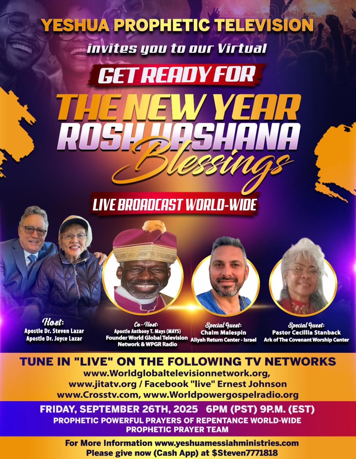 Please join us - On Friday Evening September 26 @ 6pm PST / 9pm EST / 4am Jerusalem Time, for another powerful global call that will go out to WAKE UP THE CHURCH WITH FRESH FIRE. This time it is to celebrate Rosh Hashana - the Jewish New Year - 5786!!