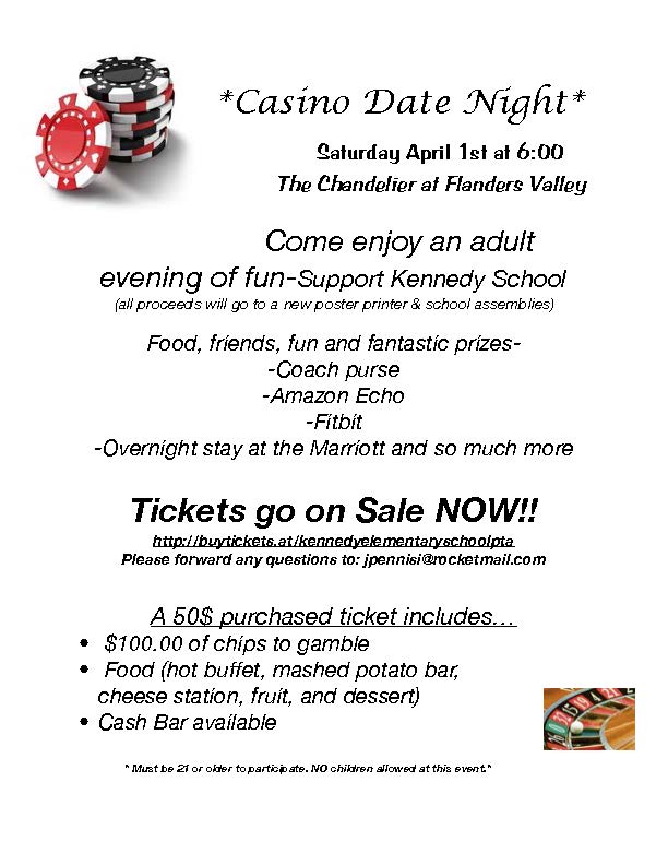 The Kennedy Casino Date Night will take place on Saturday, April 1st at the The Chandelier at Flanders Valley.