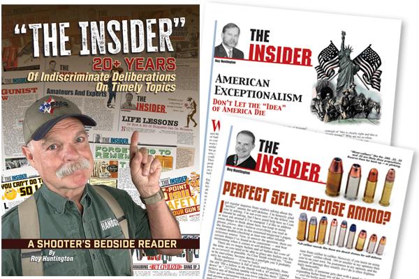 A book filled with Roy Huntington's Insider columns from American Handgunner Magazine, niftily secured in one spot, the culmination of over 120 episodes of him sitting scratching his head wondering what he was going to write about.