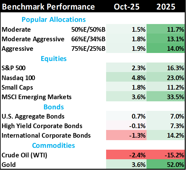 | | Table 1: Market performance estimates as of 10/31/2025 (LIMW) | | Interest rate cuts keep the party going | | |