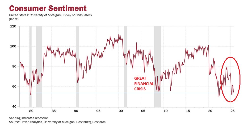 Not that anyone in power cares, but the broad middle and lower classes are struggling with a weak job market and rising inflation, especially with non-cyclical expenses like health care, insurance and other services. Note that confidence is at levels we saw during the financial crisis, so the pressure on the consumer is real.