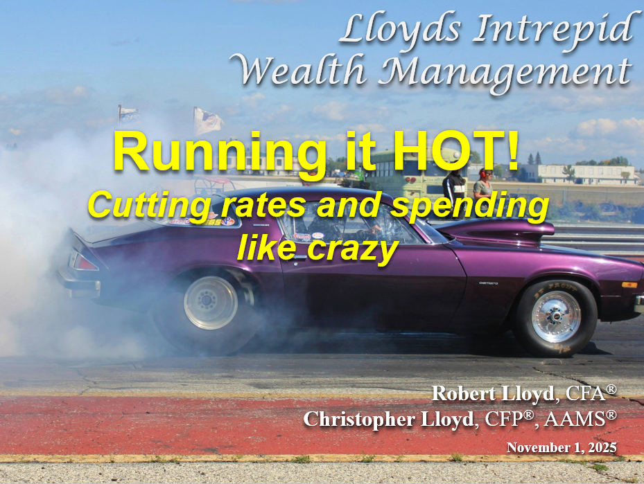 Stocks and bonds continue to grind higher as we face the last two months of the year. At this time, there doesn't seem to be a catalyst to stop the current action. However, as mentioned before, stocks are objectively expensive and much of the economic growth we see is supported by massive government spending, AI capex and falling interest rates.