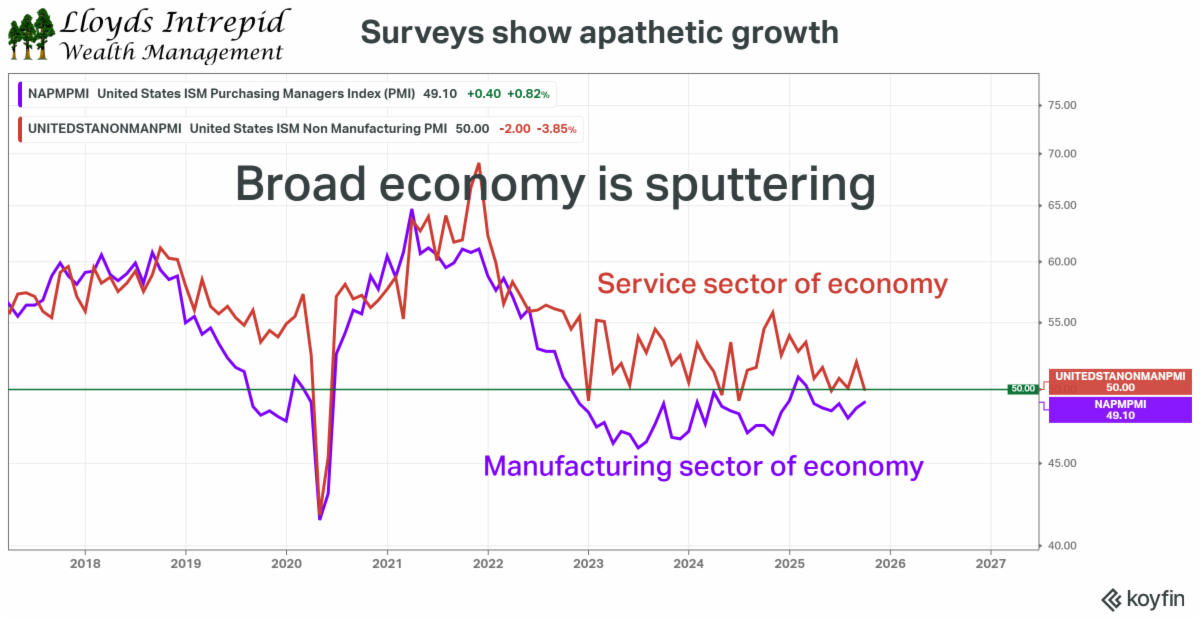 The beneficiaries of government spending and artificial intelligence capex are doing great, while the rest of the economy is sputtering along.