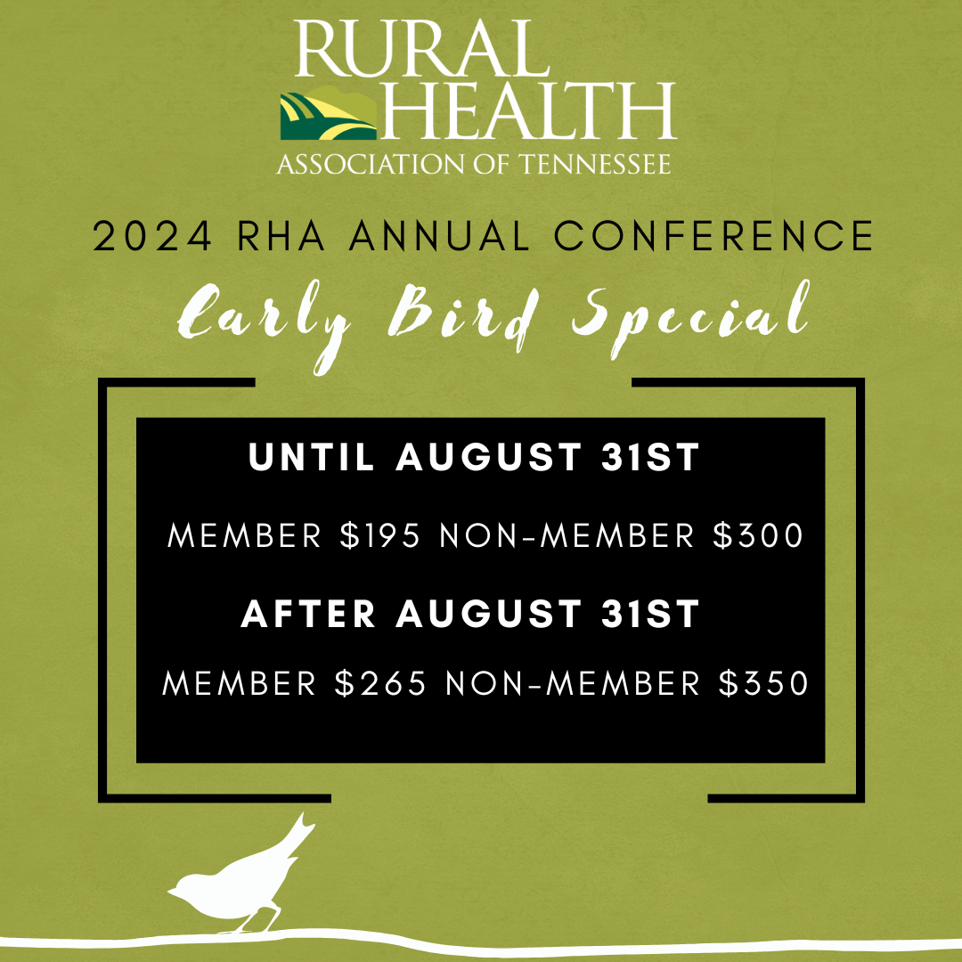 The Rural Health Association of Tennessee's Annual Awards Nominations are now open! Every year, RHA bestows awards upon impactful initiatives and individuals who are enhancing healthcare in rural Tennessee during our yearly conference. Details about the award classifications can be located here. If you have someone in mind whom you wish to propose for recognition, the nomination form can be found here. Send completed forms to info@tnruralhealth.org. Deadline for submissions is Friday, August 1st.