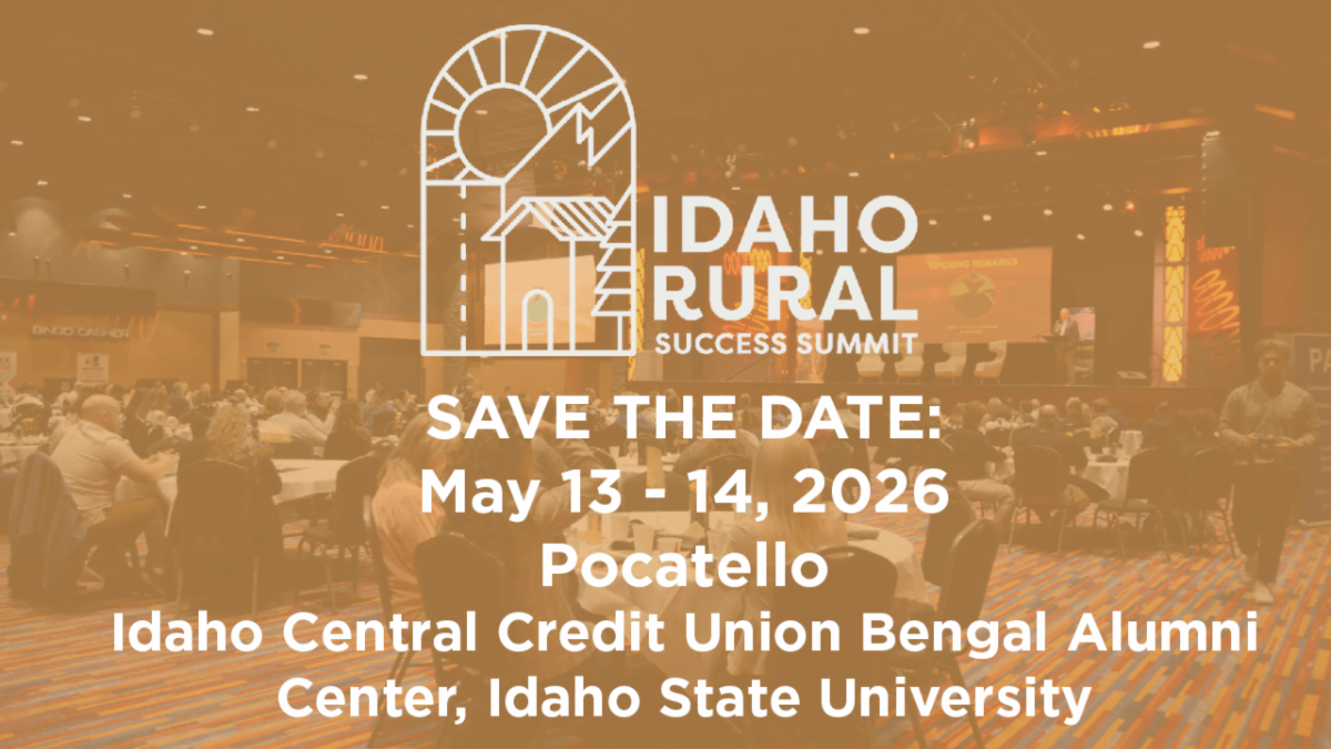 | | Idaho Rural Success Summit - Providing Tools for Flourishing Rural Communities | The Idaho Rural Success Summit is a dedicated day-and-a-half event designed by and for the thriving rural communities of Idaho. The 2026 summit will be held May 13-14 in Pocatello, ID. Through engaging presentations, insightful panels, and valuable networking sessions, the summit aims to empower participants with the knowledge and tools necessary for success. This event serves as a platform to exchange success stories and share essential resources, fostering an environment where Idaho's rural communities and businesses can not only survive but truly flourish. Save the dates - registration is opening soon. | | | |