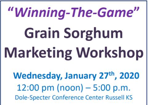 Join us on January 27th from 12:00 - 5:00 p.m. for a Grain Sorghum Marketing Workshop. This will be at the Dole-Specter conference center Russell KS.