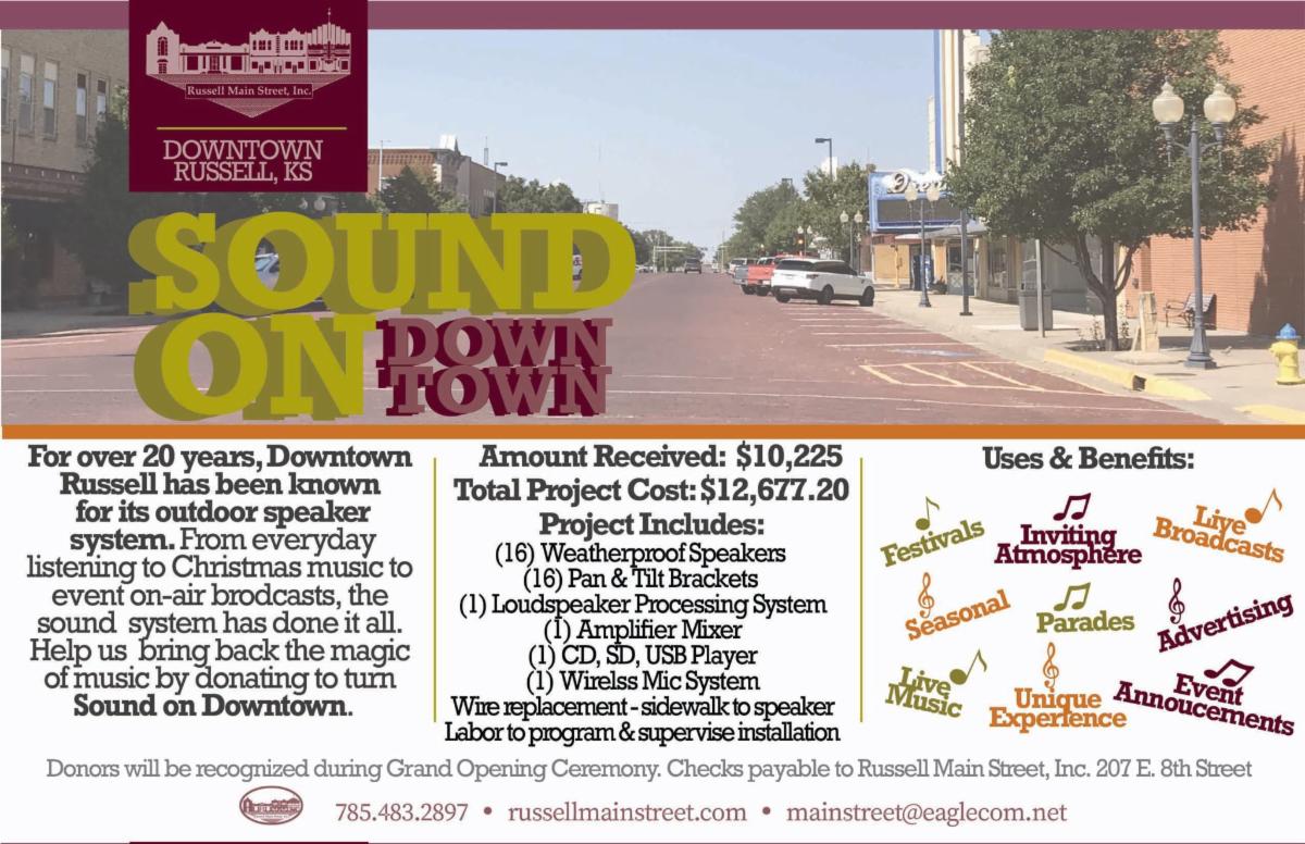 - Sound on Downtown progresses, grant awarded through Russell County Area Community Foundation donations received