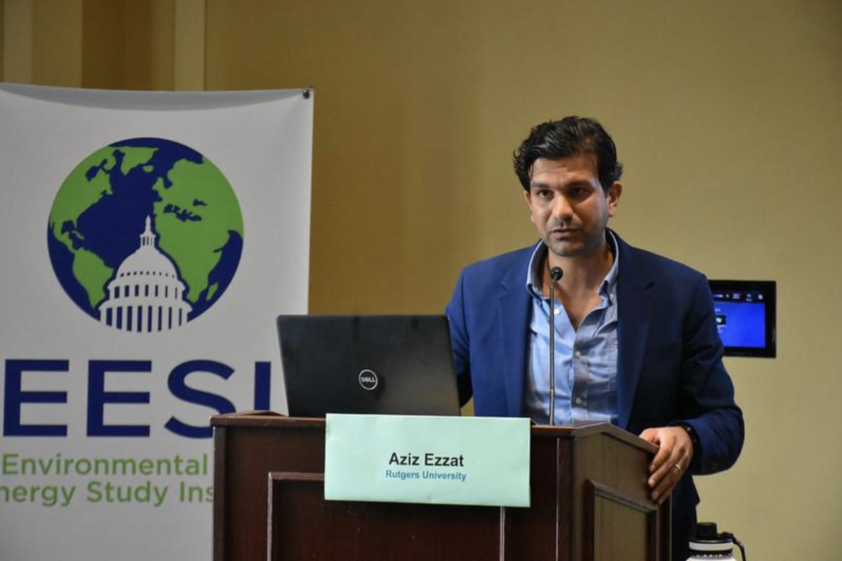 | RCEI welcomes two new staff members: Sean Harris (left) joins as Clean Energy Program Coordinator, bringing experience in public administration, offshore energy analysis, and leadership from his service with the U.S. Department of the Interior and the U.S. Army. Leon Green-Tkacenko (right) joins as a Postdoctoral Research Associate, contributing expertise in conservation ecology, offshore wind, and the intersection of renewable energy and biodiversity. | | RCEI Groundwork Grants Advance AI-Driven Climate and Energy Research | | RCEI awarded 2025 Groundwork Grants to faculty affiliates to support innovative AI-driven research addressing climate and energy challenges. | | Xiaomeng Jin is applying physics-informed AI to improve estimates of extreme air pollution from wildfires, with implications for public health preparedness. | | Robert Mieth is developing an open-source, high-resolution model of New Jersey’s power grid to support research at the intersection of AI, energy systems, and climate resilience. | | | | Lucas Marxen, Roger Wang, and Efthymios Nikolopoulos (pictured left to right) are creating an AI assistant for NJFloodMapper that enables natural-language interaction with complex flood and climate data. | | RCEI Partners with NJ Board of Public Utilities to Offer Clean Energy Graduate Student Fellowships | | In partnership with the New Jersey Board of Public Utilities, RCEI’s Clean Energy Graduate Fellowship gives Rutgers graduate students hands-on experience supporting New Jersey’s clean energy transition. Fall 2025 fellows Vincent Fedoryka (Master's student in Economics) and Adnan Zia (Master’s student in Public Informatics) worked on policy reforms for the Competitive Solar Incentive program and clean energy budget tracking. Learn more → | | Left to right: Vincent Fedoryka and Adnan Zia | | Aziz Ezzat Participates in Congressional Briefing | | | | RCEI Affiliate Aziz Ezzat, Assistant Professor of Industrial and Systems Engineering, spoke at a September 25, 2025, congressional briefing on AI in climate and energy, highlighting how AI can reduce uncertainty in energy systems, improve forecasting, and lower reserve capacity needs by up to 5% while maintaining reliability. Learn more → | | Atif Akin, RCEI Climate Change Communications Area Lead, blends art, science, and design to explore climate and society. His installation O transformed Istanbul oil silos into immersive art, provoking reflection on energy, ethics, and sustainability. Read more → | | | Katherine Bermingham, Associate Professor of Earth and Planetary Sciences, studies meteorites to reveal Earth’s formation and the Solar System. Using high-precision isotopic analysis, her work spans planetary evolution, core composition, and tracing greenhouse gas sources. Read more → | | | Cristina Marte’s Dance and Democracy program integrates movement into education, helping students explore societal and environmental issues, including climate change. Through embodied learning, Marte empowers learners to reflect, advocate, and develop empathy using dance as a transformative tool. Read more → | | | Anthony Broccoli, Distinguished Professor and RCEI Earth Systems Science Area Lead, studies climate dynamics, paleoclimate, and predictive modeling. He is especially interested in exploring how the planet’s climate system has evolved over millennia. Read more → | | | RCEI Graduate Student Support Program | | The RCEI Student Support Program supports students’ academic and professional development by advancing their research, collaboration, and communication skills, while helping them share their work, build networks, and prepare for careers as climate and energy scholars and professionals. Meet some of our most recent awardees and see the inspiring work these funds support. | | |