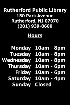 . Registration is required and preference will be given to Rutherford residents. To register, call 201-939-8600.