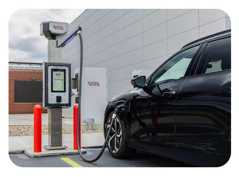 If you've ever headed east of Cleveland on I-90 you've likely seen The Lincoln Electric Company's world headquarters in Euclid, Ohio, landmarked by the 2.5MW wind turbine. Founded in 1895 and originally specializing in the manufacture of electric motors, Lincoln Electric has come a long way in 130 years. In that time, the company has become a world leader in welding technology, equipment and consumables, and now, with their Velion™ line of Electric Vehicle Charging Solutions, Lincoln Electric takes aim at the EV sector. |