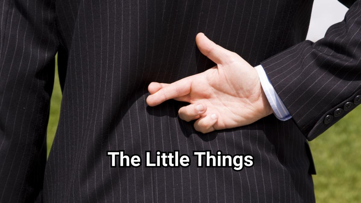 The “little things” matter with God. The little “white” lies, that are still lies. The little theft of small things at work and stealing your employer’s time by being on the internet instead of working. The half truths which are still lies. The anger, the hatred, the little sexual flirting that seems harmless, but it is not harmless to God. The little unresolved fights between husband and wife; parent and child; neighbor and neighbor. The list of “little things” goes on and on.