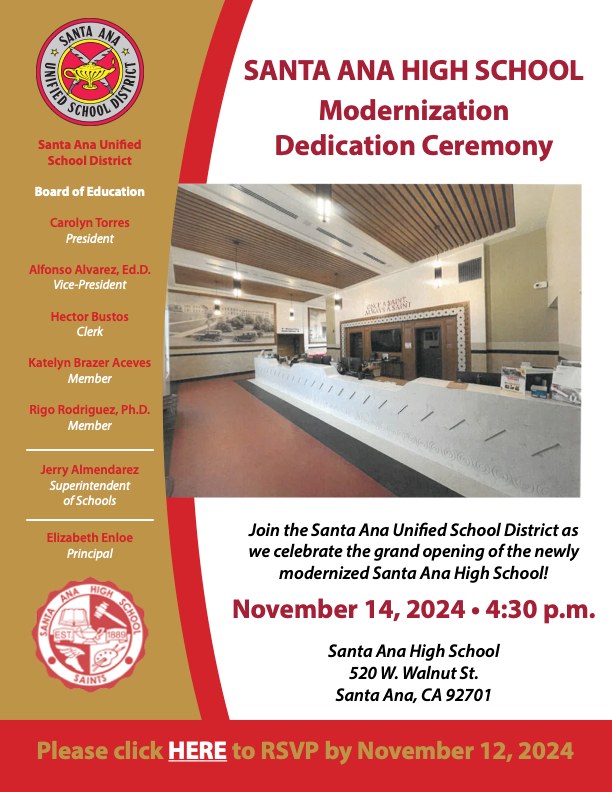 Official newsletter of the Santa Ana Unified School District, designed to inform the community about District related news, opportunities, and resources.